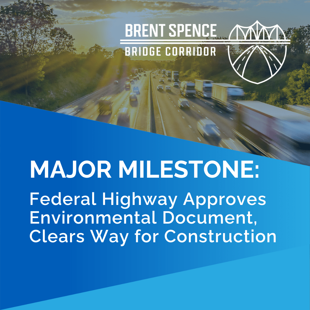 The Brent Spence Bridge Corridor Project receives federal environmental approval when the Federal Highway Administration issues a Finding of No Significant Impact, or FONSI, in connection with its review of an environmental assessment that analyzes the project’s impacts to the natural and human environment.