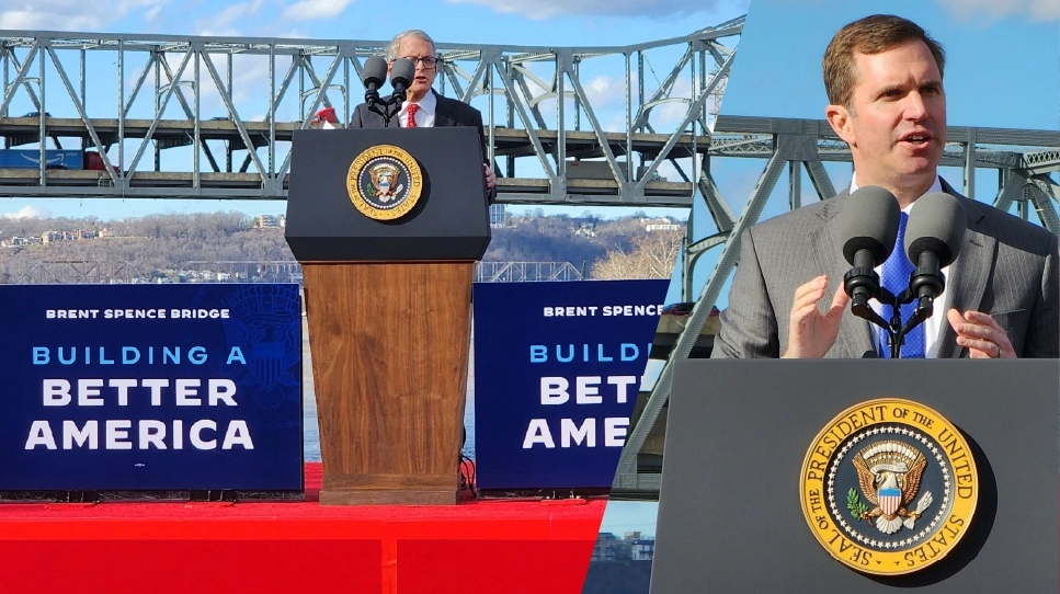 The Kentucky Transportation Cabinet and Ohio Department of Transportation sign of memorandum of understanding, formally agreeing to study and develop a project to improve the Brent Spence Bridge Corridor. This marks the beginning of a collaboration to address the bridge’s infrastructure needs, including Interstates 71 and 75.